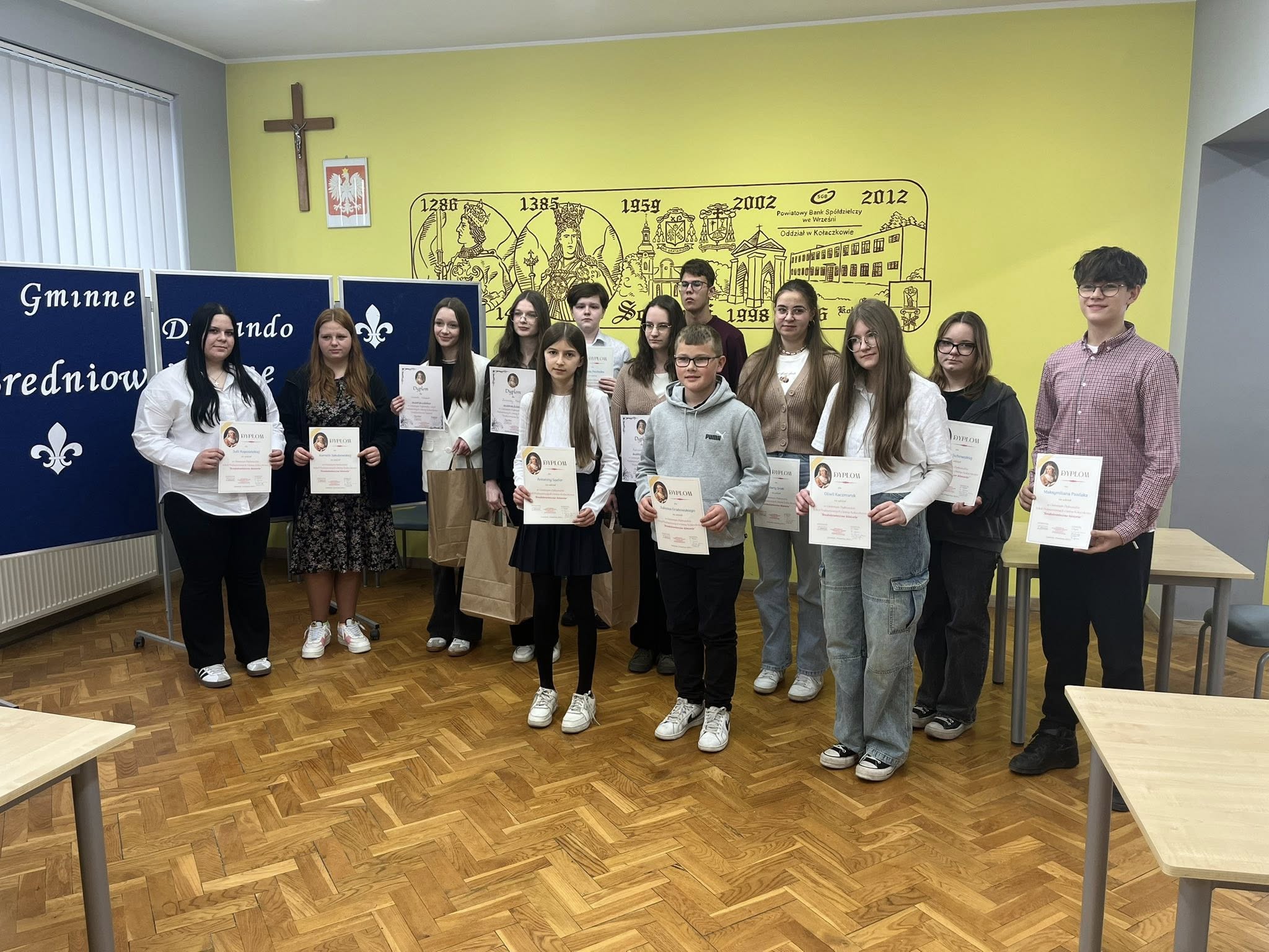 Do konkursu przystąpiło trzynaścioro uczniów z pięciu szkół Gminy Kołaczkowo. Tekst dyktanda dotyczył czasów panowania Królowej Jadwigi Andegaweńskiej w Krakowie. Z naszej szkoły w potyczkach ortograficznych II miejsce zajęła Zuzanna Mielcarek.