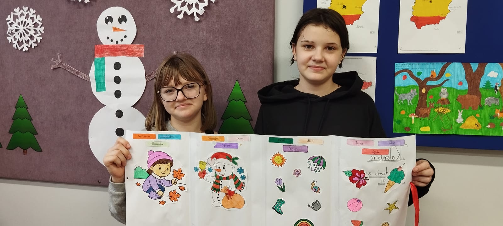 Kółko młodego hispanisty to nie tylko standardowe zajęcia. Oprócz tradycyjnej nauki uczniowie bawią się językiem obcym. Nauka nazw miesięcy nie musi być nudna. Na ostatnich zajęciach uczniowie wykonywali kalendarze z nazwami miesięcy i kolorowymi ilustracjami